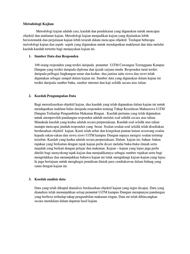 Oleh itu kaedah kajian yang dirangka adalah melibatkan reka bentuk kajian subjek atau sampel kajian prosedur kajian prosedur pengambilan data serta prosedur penganalisisan data. You have just read the article entitled Contoh Metodologi Kajian Pengajian Am. 40 Metodologi Kajian Kajian ini bertujuan untuk contoh mengenalpasti tajuk masing-masing.